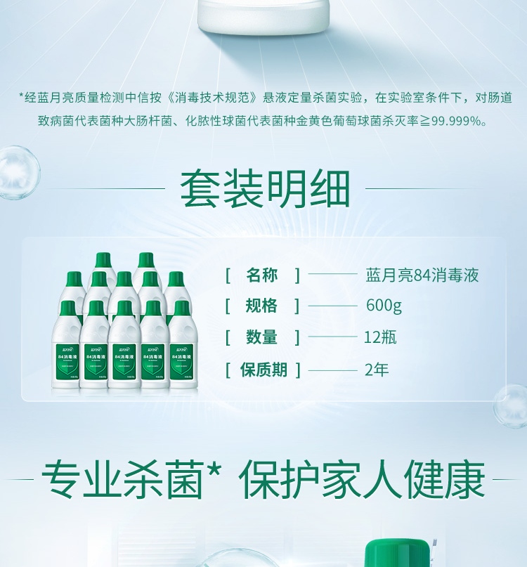 蓝月亮 卫诺 84消毒液 600g×12瓶 消毒水 杀菌率99.999% 家庭果蔬玩具宠物等多用途可用